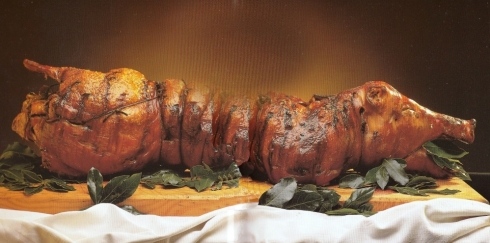 Porchetta ( cochon roti farci entier 25 Kg, une partie 4 Kg )